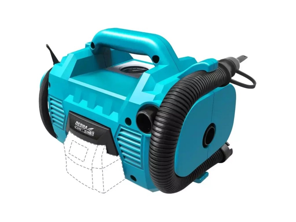 Akumulátorový vzduchový kompresor DEDRA SAS+ALL DED7073 je určen pro huštění pneumatik automobilů, kol, míčů, matrací a dalších nafukovacích předmětů. Díky akumulátorovému napájení umožňuje práci bez přívodního kabelu.