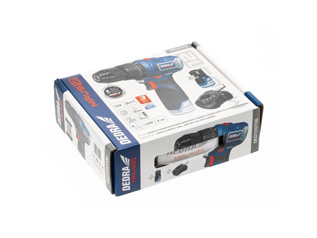 Sada elektrického nářadí DEDRA MAUS DED7310T06 je praktická startovací sada pro domácí dílnu, montážní práce i běžné opravy v domácnosti. Obsahuje akumulátorovou příklepovou vrtačku 12 V, baterii 2 Ah a nabíječku.