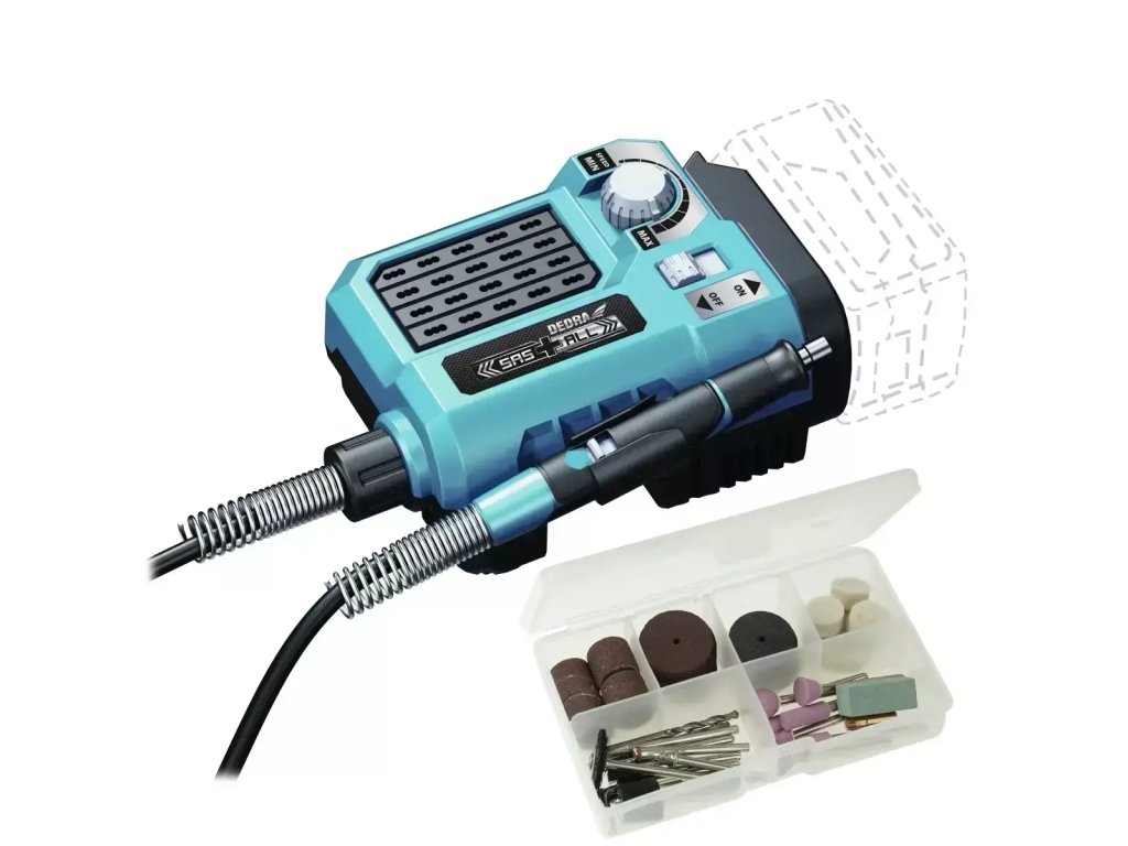 Aku mini bruska DEDRA DED6903 – 18 V, sada 40 ks příslušenství