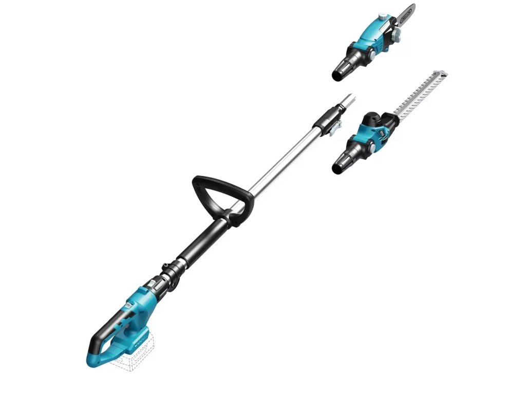 Akumulátorový kombinovaný nástroj DEDRA SAS+ALL DED7096 spojuje funkci tyčové řetězové pily a plotostřihu v jednom zařízení. Je ideální pro údržbu stromů, vysokých keřů a živých plotů na zahradě nebo v sadu.