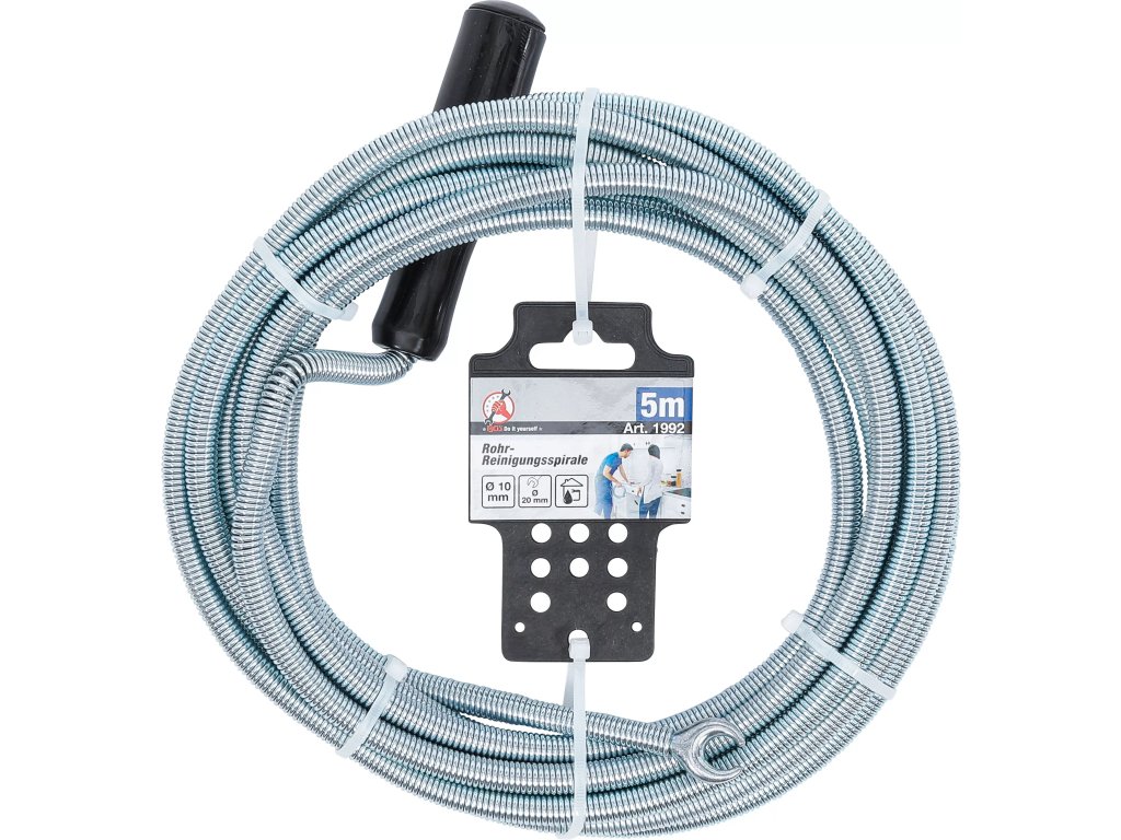 Spirála pro čištění trubek BGS technic 1992 je určena pro mechanické uvolňování ucpaných odpadních a kanalizačních trubek. Je vybavena rukojetí, která umožňuje pohodlné a kontrolované otáčení spirály během práce. Díky menšímu průměru spirály je vhodná pro běžné domácí odpady a užší potrubí. Tvarovaná hlava zvyšuje účinnost při zachycení a odstranění usazenin a nečistot.