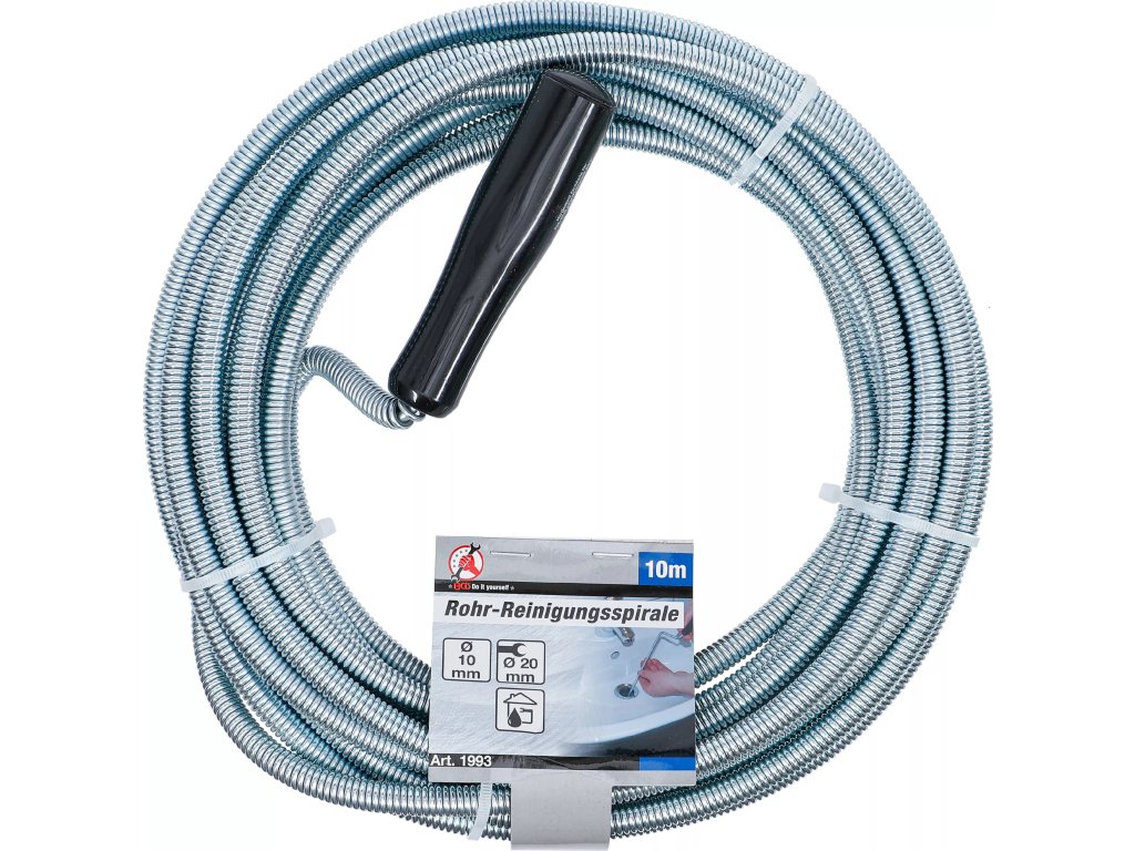 Spirála na čištění potrubí BGS technic 1993 je určena pro mechanické čištění a uvolňování ucpaných odpadních a kanalizačních potrubí. Díky délce 10 metrů umožňuje dosáhnout i do hlubších úseků potrubí. Rukojeť zajišťuje pohodlné a kontrolované otáčení spirály při práci. Robustní provedení spirály s větším průměrem zvyšuje její účinnost při odstraňování usazenin a nečistot, zatímco tvarovaná hlava napomáhá lepšímu zachycení ucpávky.