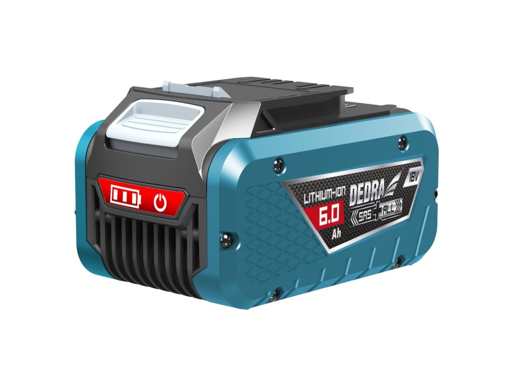 DEDRA DED6936 je výkonný akumulátor s kapacitou 6,0 Ah, navržený pro dlouhou a efektivní práci s nářadím systému SAS+ALL. Lithium-iontová technologie eliminuje paměťový efekt, takže lze baterii kdykoli dobíjet bez snižování její životnosti nebo dostupné kapacity. Na horní části krytu jsou tři LED diody, které zobrazují aktuální stav nabití a poskytují okamžitý přehled o dostupné energii.