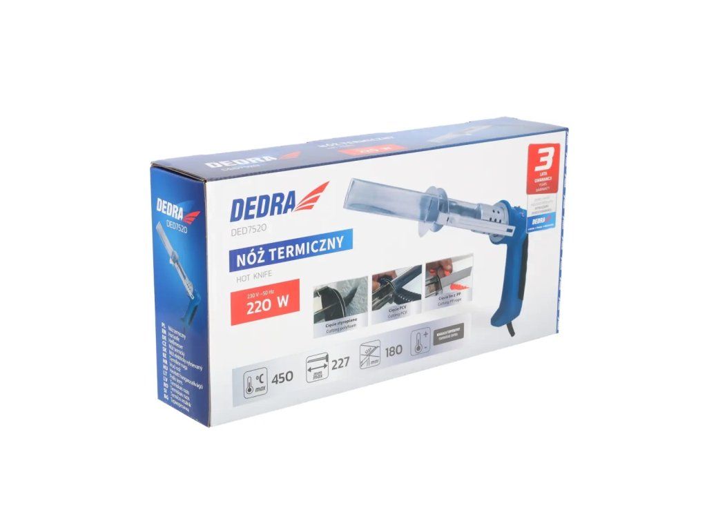 Termický nůž DEDRA DED7520 je výkonný nástroj určený pro přesné a čisté řezání polystyrenu, plastů a dalších pěnových materiálů. Díky výkonu 220 W a nastavitelné pracovní teplotě až 450 °C umožňuje provádět rovné i tvarované řezy bez drobení materiálu.