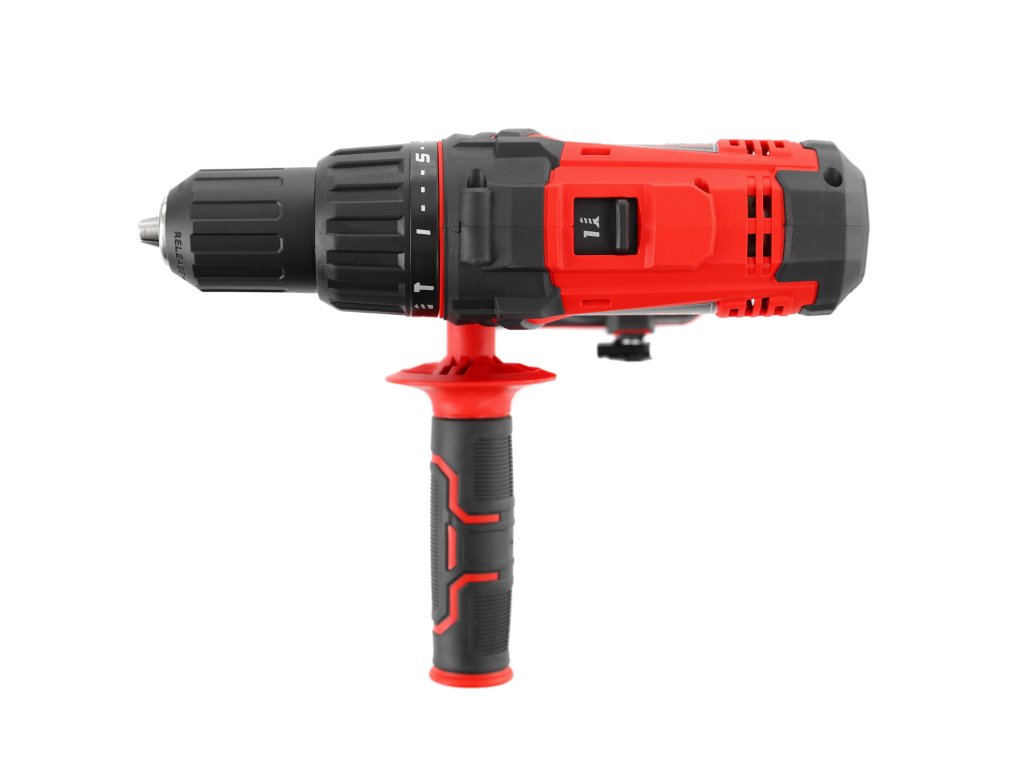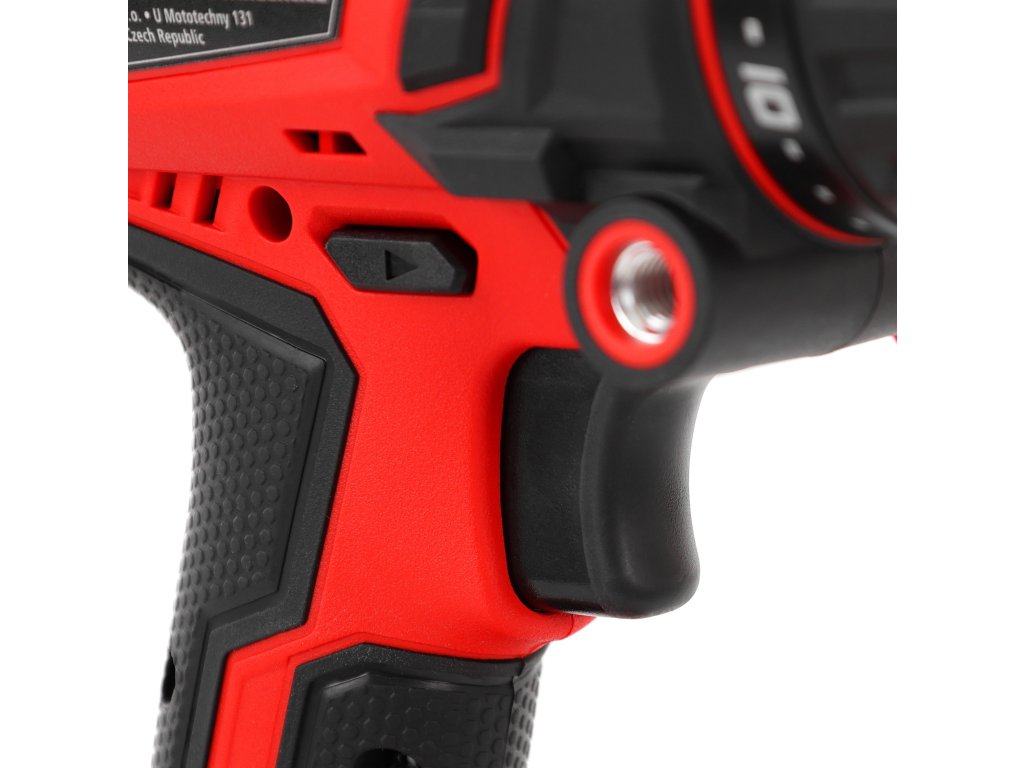 Vrtačka je vybavena rychloupínacím kovovým sklíčidlem (2–13 mm), LED přisvětlením, indikací stavu nabití baterie, elektronickou brzdou a přepínačem směru otáčení. To vše v praktickém plastovém kufříku spolu se sadou bitů, vrtáků a držákem na bity.