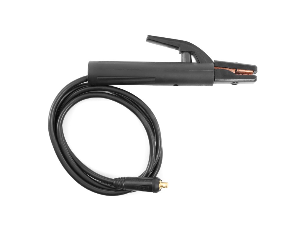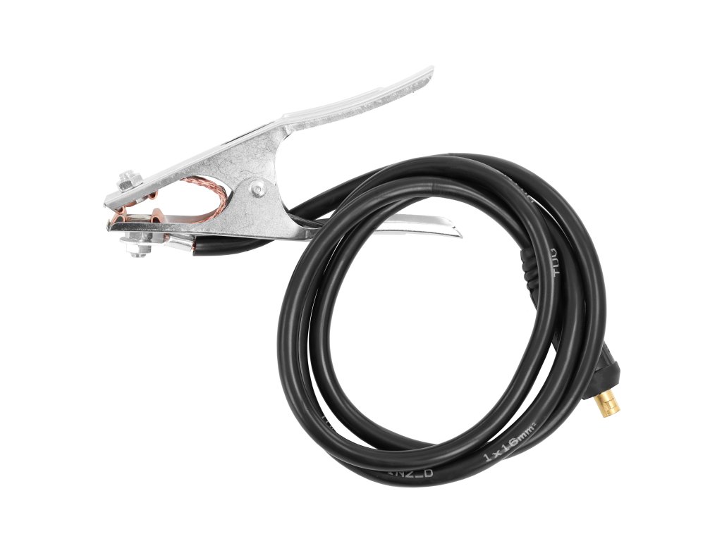 Součástí balení je kabel se zemnící svorkou a kabel s držákem elektrod. Ochranný svářecí štít není součástí balení a je nutné jej dokoupit samostatně.