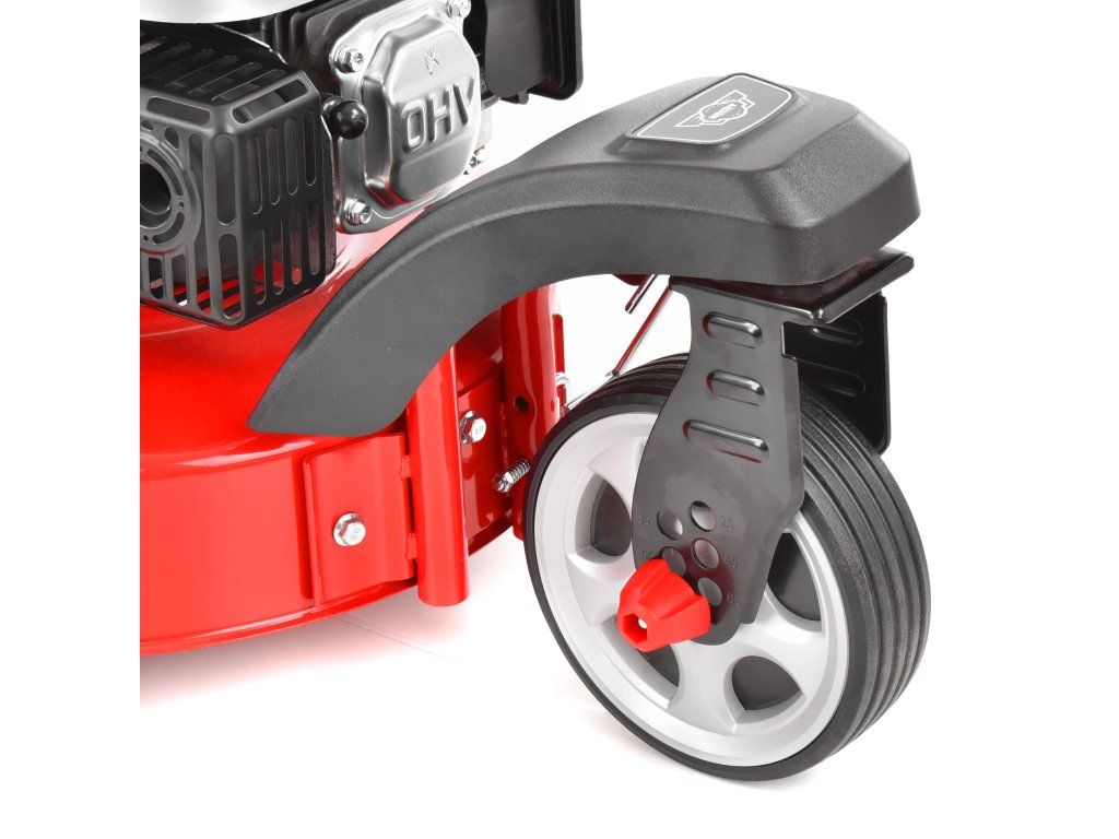 Díky nízko položenému těžišti je sekačka stabilní a bezpečná i při práci na nerovném terénu.