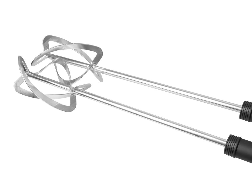 Míchadlo nabízí dvě rychlostní úrovně – první s vysokým točivým momentem (0–450 ot/min) pro husté směsi a druhou (0–690 ot/min) pro řidší materiály. Výhodou jsou také rychloupínací metly o průměru 110 mm, které lze snadno vyměnit bez použití nářadí. Ergonomický design s měkčenými rukojeťmi ve tvaru D zajišťuje pohodlnou manipulaci i při delší práci.