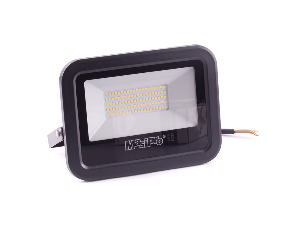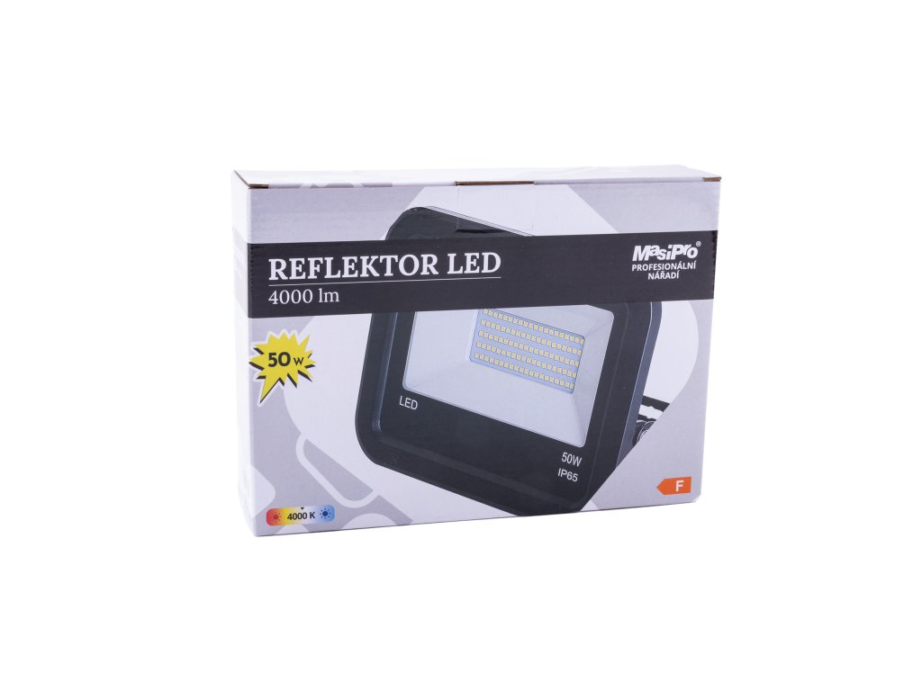LED reflektor MasiPro 106684 s výkonem 50 W je výkonné a úsporné svítidlo pro profesionální i domácí použití. Nabízí vysoký světelný tok 4000 lm a neutrální bílé světlo o teplotě 4000 K, které poskytuje ideální viditelnost bez zkreslení barev. Reflektor je vybaven ochranným tvrzeným sklem a splňuje standard IP65, což zaručuje odolnost vůči prachu i stříkající vodě – ideální pro venkovní prostředí nebo náročné pracovní podmínky. Napájení 230 V / 50 Hz, přívodní kabel je bez vidlice pro možnost individuálního zapojení.